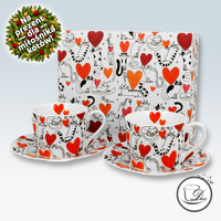 Koty i serca Koci Świat komplet 2 filiżanek ze spodkami